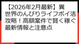いずれにしても、「異世界のんびりライフ」はポイ活案件として今後も一定の需要が見込まれるため、継続的に最新情報をチェックし、有利な条件の案件を逃さないようにすることが重要です。