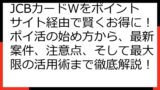このガイドでは、JCBカードWでのポイ活を最大限に楽しむための情報を徹底解説します。