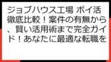 ポイントサイト経由で求人を探す際の注意点や、ジョブハウス工場のキャンペーンを最大限に活用する方法、さらには、ジョブハウス工場以外の求人サービスでポイ活する方法まで、幅広く情報をお届けします。