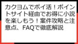 - カクヨム ポイ活 完全ガイド:2025年最新情報!案件の有無から、お得な始め方、注意点まで徹底解説