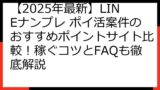 この記事では、2025年5月現在の最新情報に基づき、LINEナンプレのポイ活案件について徹底的に解説します。