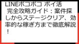 - 案件の特徴:「LINE ポコポコ」では、主にステージクリアが条件となります。