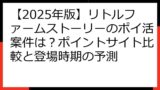 上記の主要ポイントサイトにおいて、現在および過去において、「リトルファームストーリー」を対象としたポイ活案件は一切確認できませんでした。
