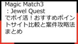 Magic Match3に似た名称のマッチ3パズルゲーム、例えば「ジュエルジャングル」や「キラキラジュエルパズル」、「ポイ活&懸賞マッチ3パズルゲーム」といったアプリについては、複数のポイントサイトでポイ活案件として提供されています。