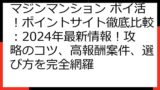 このセクションでは、「マジンマンション」のポイ活案件に関する、最新の情報を分析します。