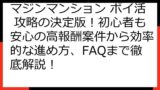この記事では、「マジンマンション」のポイ活案件に特化し、お得にポイントを稼ぐための情報を網羅的に解説します。