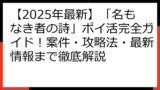 - 現時点(2025年12月25日時点の調査)では、「名もなき者の詩」を対象とした、ゲームの進行を伴う高額報酬のポイ活案件は、残念ながら見つかっていません。