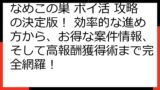 - **他のポイ活との組み合わせ**: 他のポイ活案件と組み合わせ、飽きを防ぎましょう。