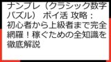 この章では、ナンプレ(クラシック数字パズル)のポイ活案件に関する最新情報をお届けします。