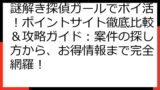 この記事では、「謎解き探偵ガール」のポイ活案件について、徹底的に掘り下げます。