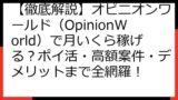 この記事を読めば、あなたも「オピニオンワールド」の本当の姿を知り、後悔しない選択ができるはずです。
