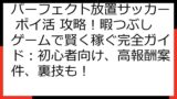この記事では、「パーフェクト放置サッカー」のポイ活案件について、徹底的に解説します。