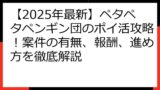 この記事では、2025年11月14日現在、ペタペタペンギン団のポイ活案件の現状を徹底調査しました。