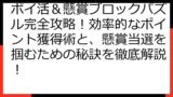 このガイドでは、ポイ活&懸賞ブロックパズルについて、徹底的に解説します。