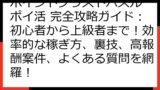 ポイ活初心者の方から、さらに効率的にポイントを稼ぎたい上級者の方まで、きっと満足できる内容です。