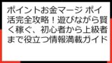 さあ、ポイントお金マージの世界へ飛び込み、お得なポイ活ライフを始めましょう。