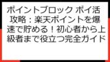 ポイントブロックの基本から、ポイントサイトの選び方、そして楽天サービスとの連携まで、ポイ活のプロになるための情報を網羅しています。