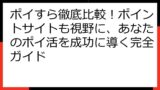 **ポイントサイトの比較:** ポイすらだけでなく、他のポイントサイトの広告案件も比較してみましょう。
