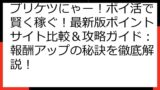 この記事では、「プリケツにゃー!」という大人気ゲームアプリでのポイ活を、徹底的に攻略するための情報を網羅的に解説します。