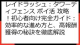 この中見出しでは、現時点で確認されている「レイドラッシュ:タワーディフェンス」のポイ活案件について、具体的な情報を提供します。