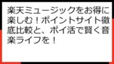 楽天ミュージック ポイ活は、音楽好きにとって、非常にお得な活動です。