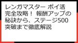 この記事では、「レンガマスター」のポイ活案件について、ポイントサイトごとの報酬額や達成条件を比較し、効率的にポイントを獲得するための戦略を徹底解説します。