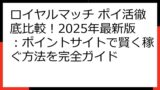 これらの要素を総合的に考慮し、自分に合った案件を選ぶことが、ロイヤルマッチのポイ活を成功させるための重要なポイントです。