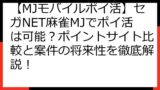 セガNET麻雀MJ(MJモバイル)を対象としたポイ活案件について、現状を詳しく調査しました。