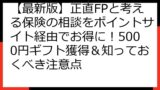 「正直FPと考える保険の相談」で、今、ポイ活界隈が熱狂しています。.