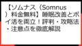 これらの細やかな配慮が、ソムナスが多くのユーザーから「良心的」と評価される理由の一つであり、競合アプリとの差別化要因ともなり得ます。