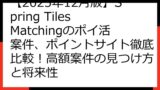 将来的な案件の復活や新形態も予想される中、この記事を読めば、ポイ活で損をすることなく、Spring Tiles Matchingを最大限に活用する方法がきっと見つかるはずです。