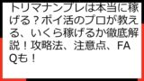 - 【徹底比較】トリマナンプレはポイ活案件になる?主要ポイントサイトでの現状と将来性を徹底解説!