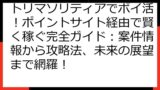 この記事では、「トリマソリティア」を対象としたポイ活案件について、現在の状況から将来の可能性、そしておすすめのポイントサイトを徹底比較・解説します。
