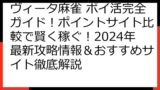 この記事では、「ヴィータ麻雀」のポイ活案件で、最大限の成果を出すための情報を網羅的に解説します。