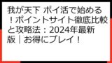 1. 我が天下 ポイ活 攻略:2024年最新版!効率的な稼ぎ方と注意点