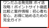 この章では、「ワンだふる発見隊」のポイ活案件に関する基礎知識を解説します。