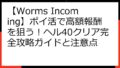 「Worms Incoming」の案件では、特に初期ステップでの承認率が低いという報告が多いため、「もし承認されなくても仕方ない」という心構えで利用することも、精神的な負担を軽減するために有効です。. メイン報酬であるヘルモードレベル40クリアを目指す場合は、その報酬額に見合うリスクかどうかを慎重に判断しましょう。.