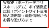 ポイ活案件の現状から、効率的なプレイ方法、そして将来的な可能性まで、あらゆる角度からWSOPポイ活を掘り下げます。