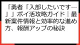 「勇者『入部したいです…』」のポイ活案件に挑戦する上で、各案件のクリアにかかる時間と、それに見合う労力(作業量)を把握することは非常に重要です。.