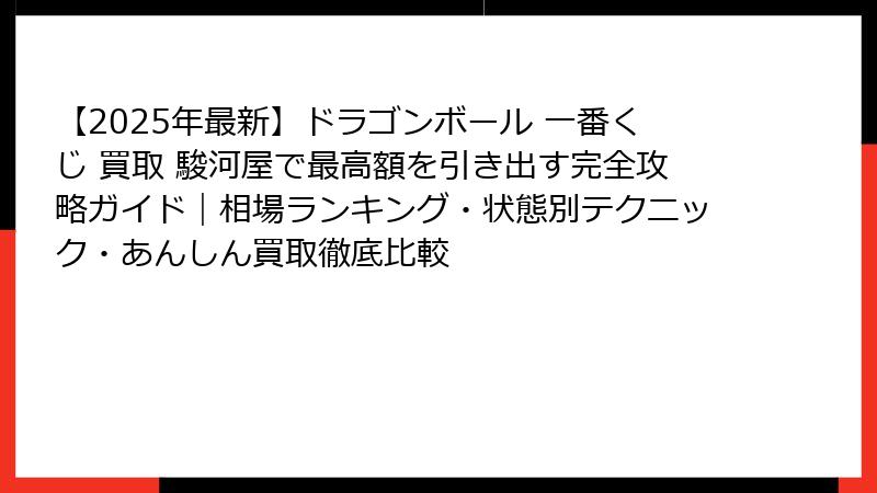 - 今すぐ駿河屋でドラゴンボール一番くじを最高額で売るための最終チェックリスト&2025年総まとめ
