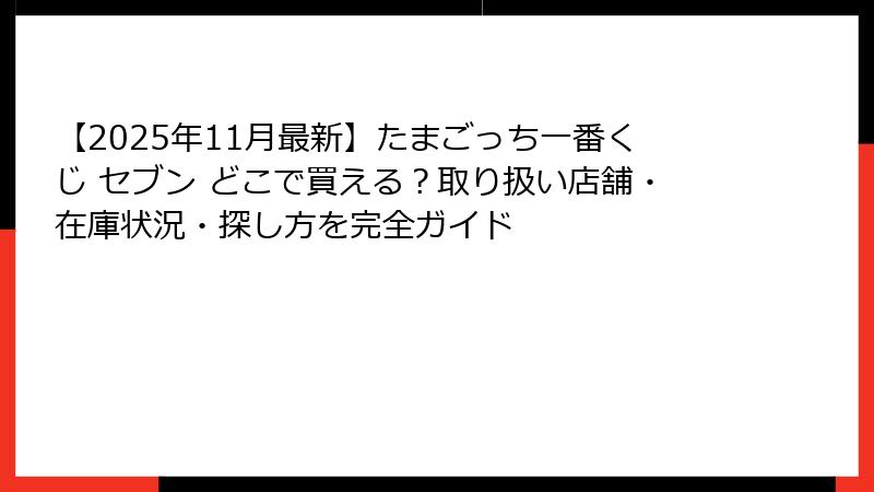 そんな状況であなたが真っ先に打ち込んだ検索ワードが、まさに「たまごっち 一番くじ セブン どこ」だったはずです。