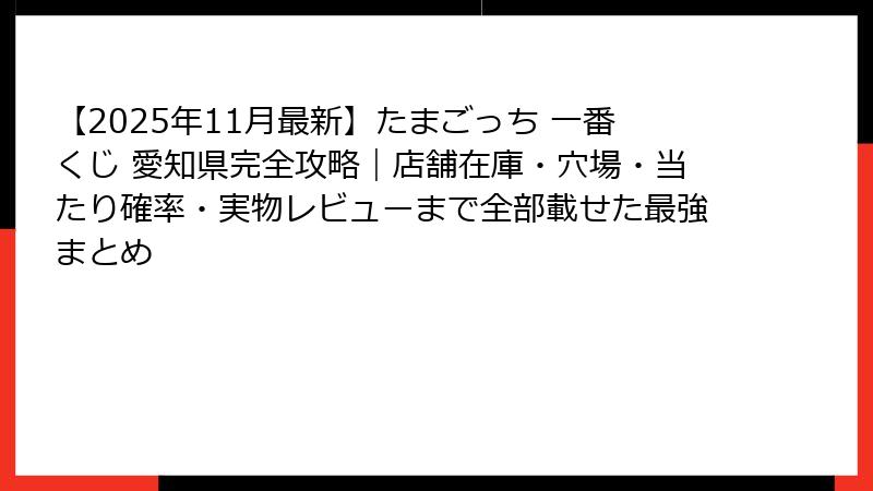 - 愛知県民必見!過去のたまごっち一番くじ 傾向と2025年の当たり確率予想