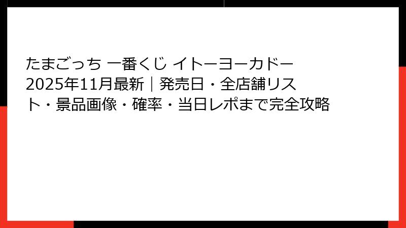 たまごっち 一番くじ イトーヨーカドー 2025年11月最新|発売日・全店舗リスト・景品画像・確率・当日レポまで完全攻略