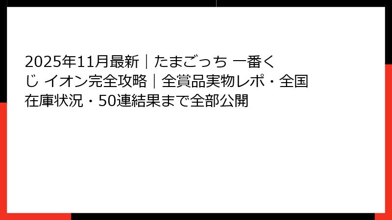 2025年11月最新|たまごっち 一番くじ イオン完全攻略|全賞品実物レポ・全国在庫状況・50連結果まで全部公開