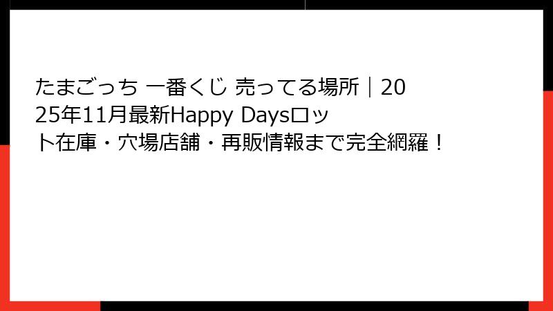 次の更新は11月20日(木)夜!「Happy Daysくじ」の再入荷店舗リストを最速でお届けします。