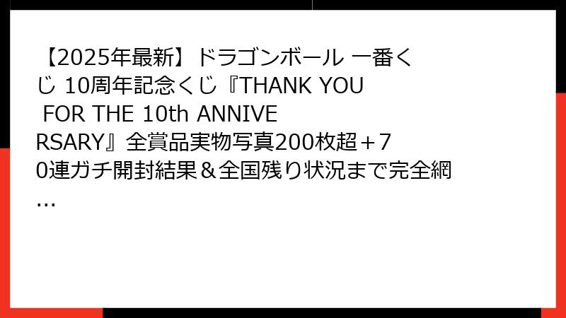 【2025年最新】ドラゴンボール 一番くじ 10周年記念くじ『THANK YOU FOR THE 10th ANNIVERSARY』全ラインナップ徹底解説&景品画像100枚超掲載!A賞〜ラストワン賞まで実物写真付きで完全網羅