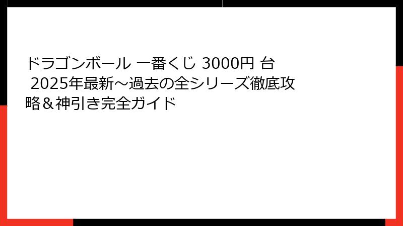 - 【2025年最新】ドラゴンボール一番くじ 3000円台の全シリーズ一覧&発売スケジュール