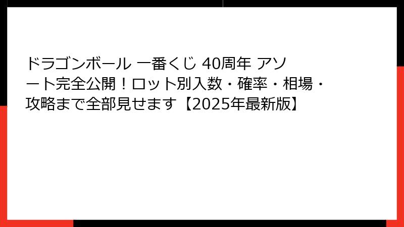 はじめに:なぜ40周年一番くじのアソート情報がこんなに貴重なのか