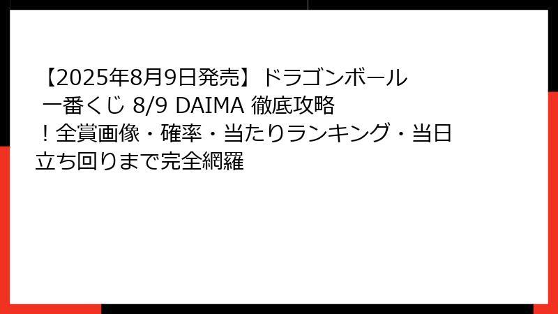 - 【速報】2025年8月9日発売!一番くじ ドラゴンボール DAIMA ~冒険の始まり~ の全貌が判明!