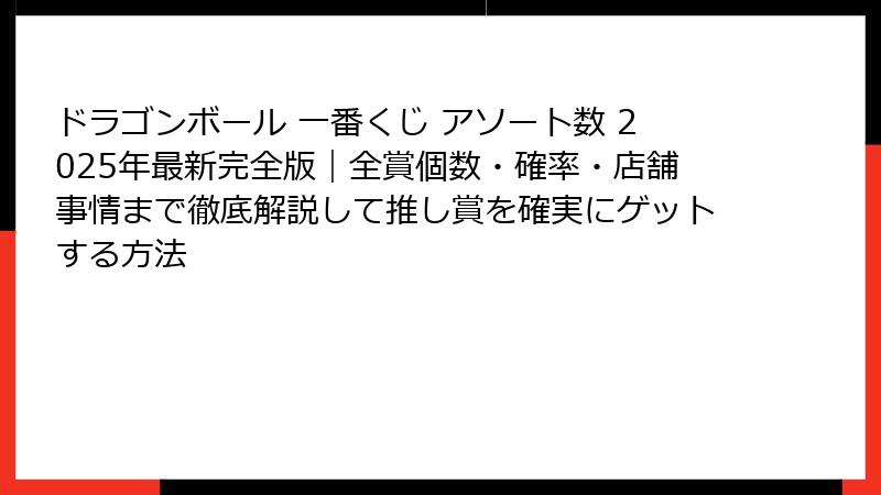 ドラゴンボール 一番くじ アソート数 2025年最新完全版|全賞個数・確率・店舗事情まで徹底解説して推し賞を確実にゲットする方法
